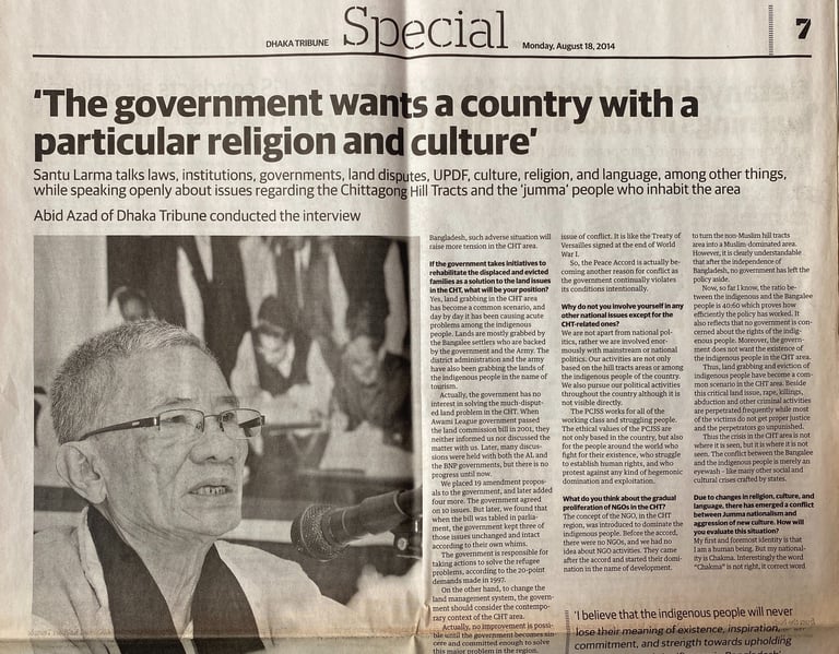 Exclusive interview with Santu Larma, renowned leader of the indigenous Jumma people and key architect of the historic peace accord with the Bangladesh government.