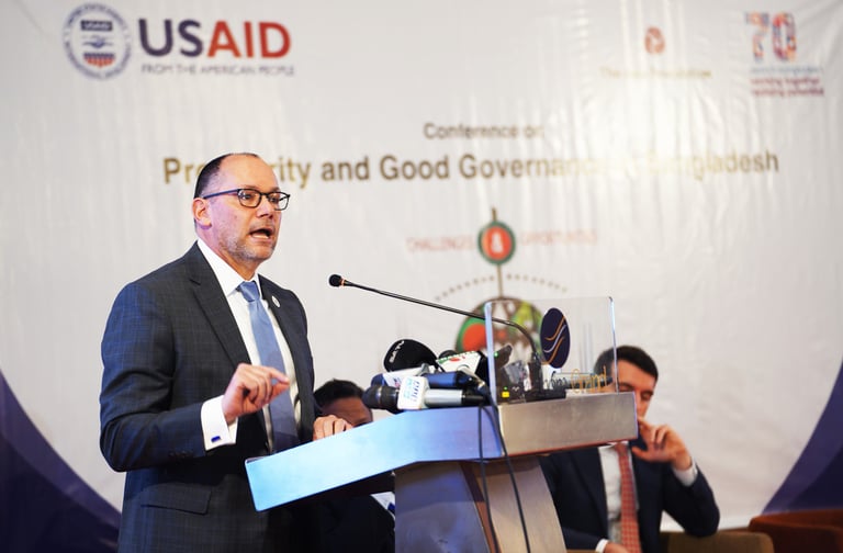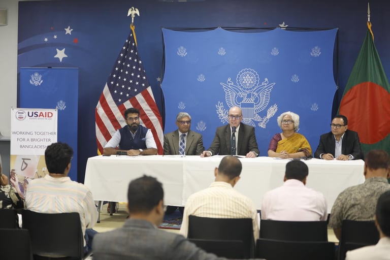 U.S. Ambassador Marcia Bernicat prior to a press conference in 2018 in Dhaka.